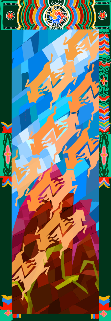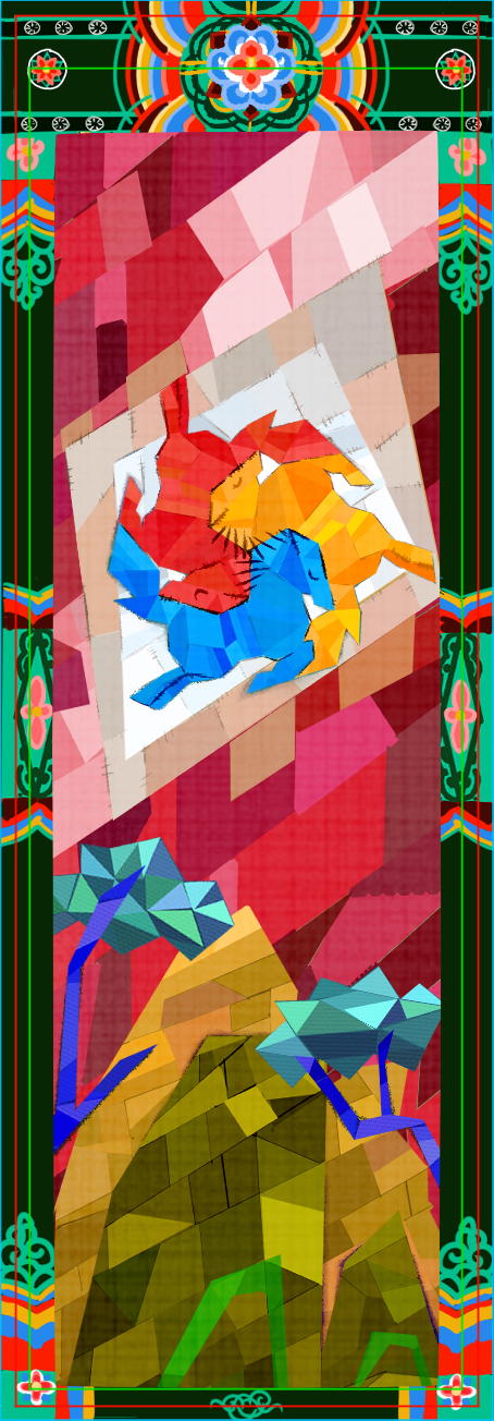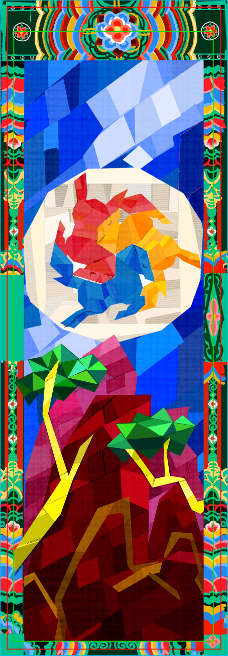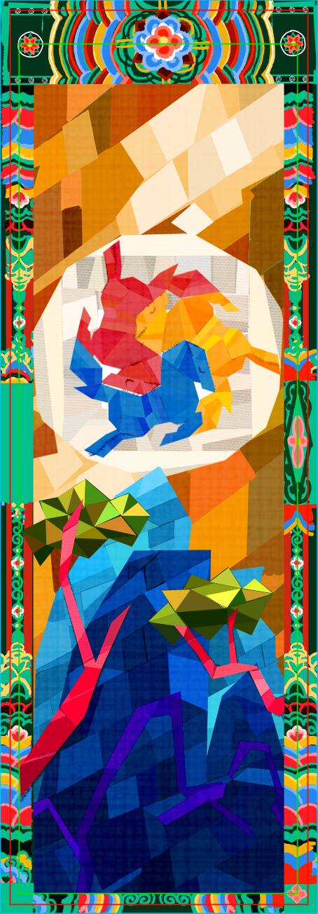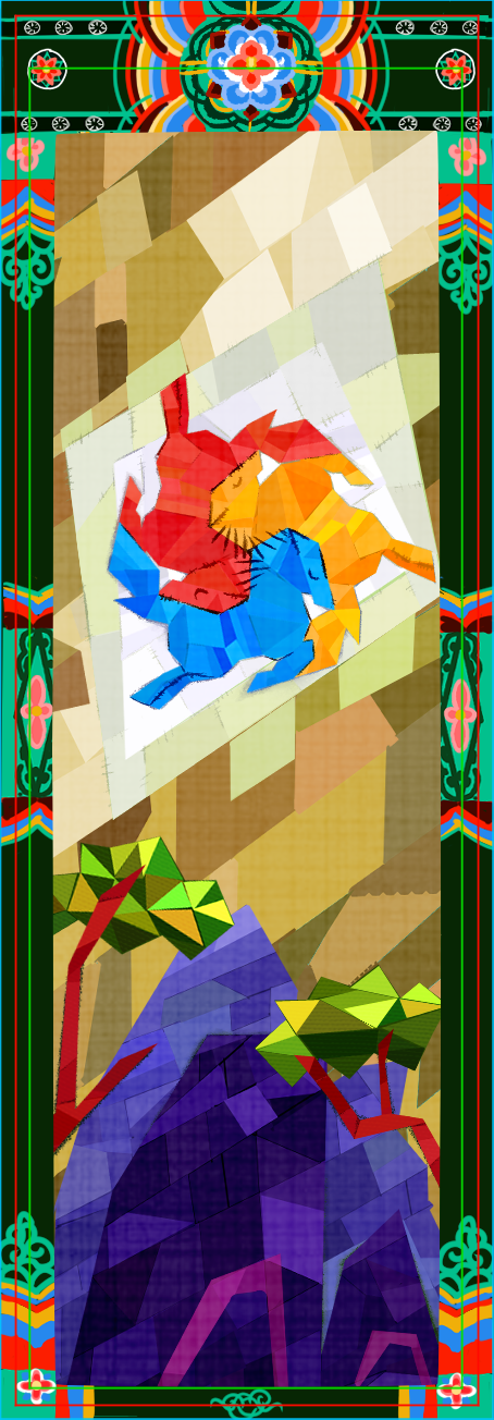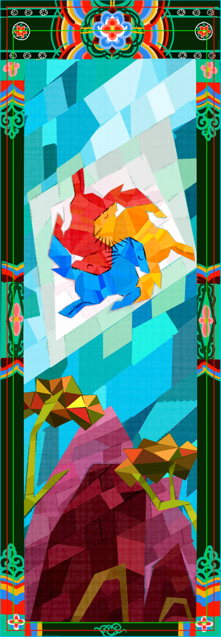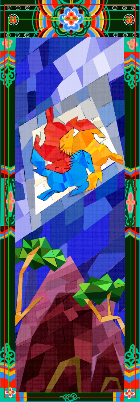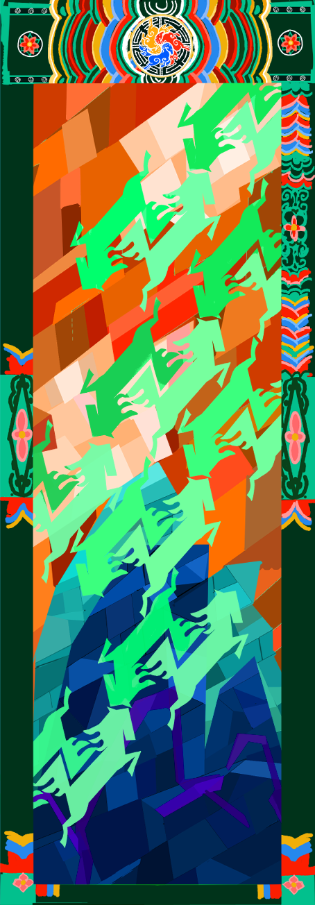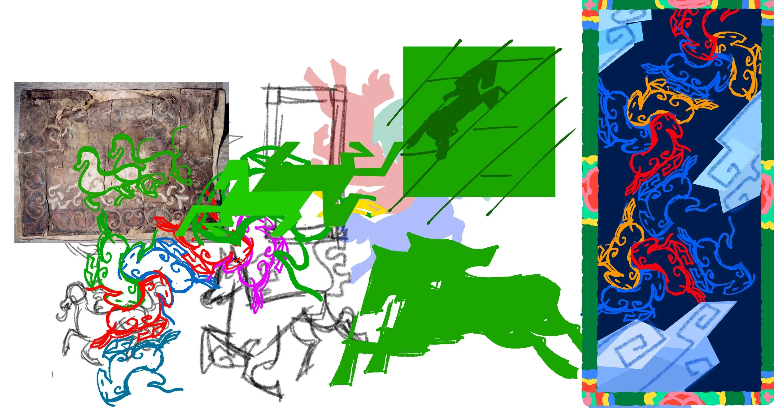 Designing a complete pattern of tessellated horses that would cover the whole plane was much difficult than expected. Inspired by the ‘Samtageuk’ from a older version of South Korea’s flag, the horses were able to be presented as a tessellating spiral.