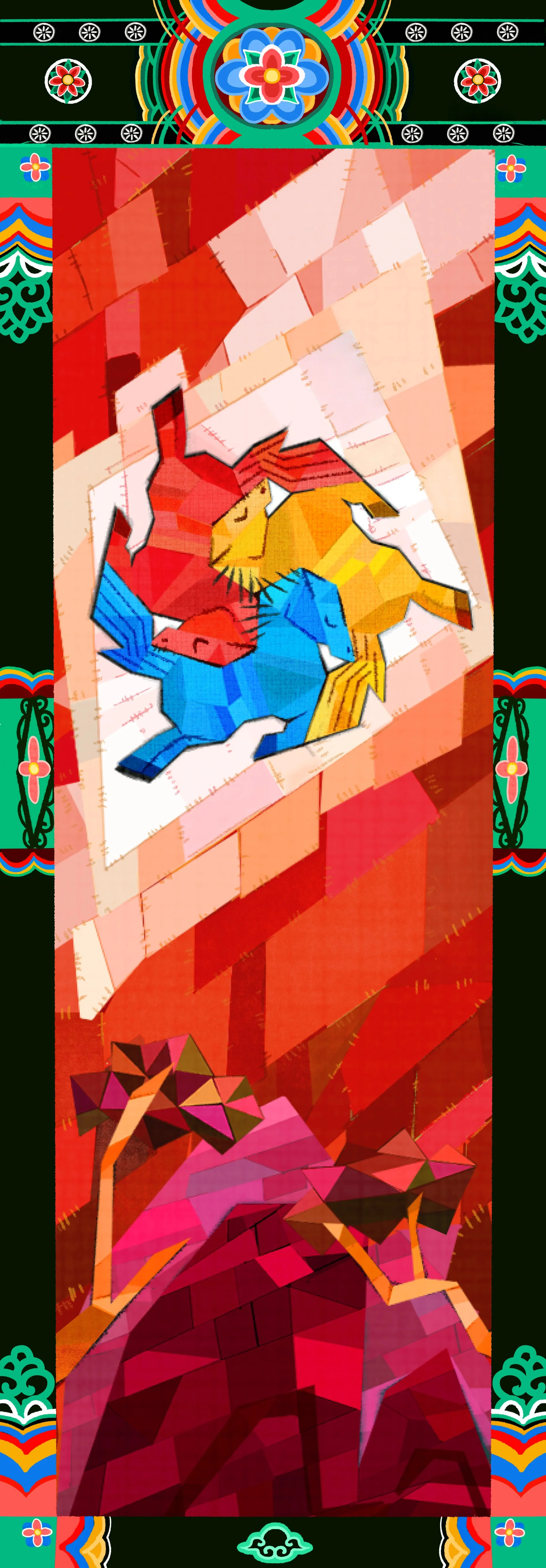2026 would be the year of the fire horse, which would represent rapid energy and transformation. The goal from the start was to represent the horses in an abstract and tessellated manner.